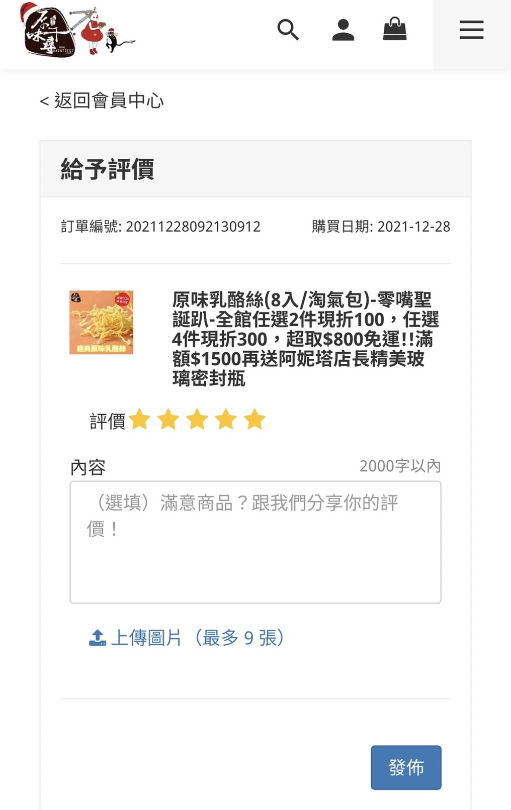 只要對我們評論商品吃完感想,就能獲得購物金50元(限90天內用)並且可以在下次購物結帳時使用哦!