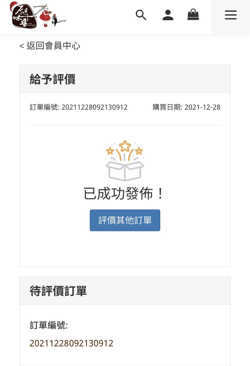 帳號下當前至少有 1 筆待評價的訂單(當前訂單狀態為「已完成」)