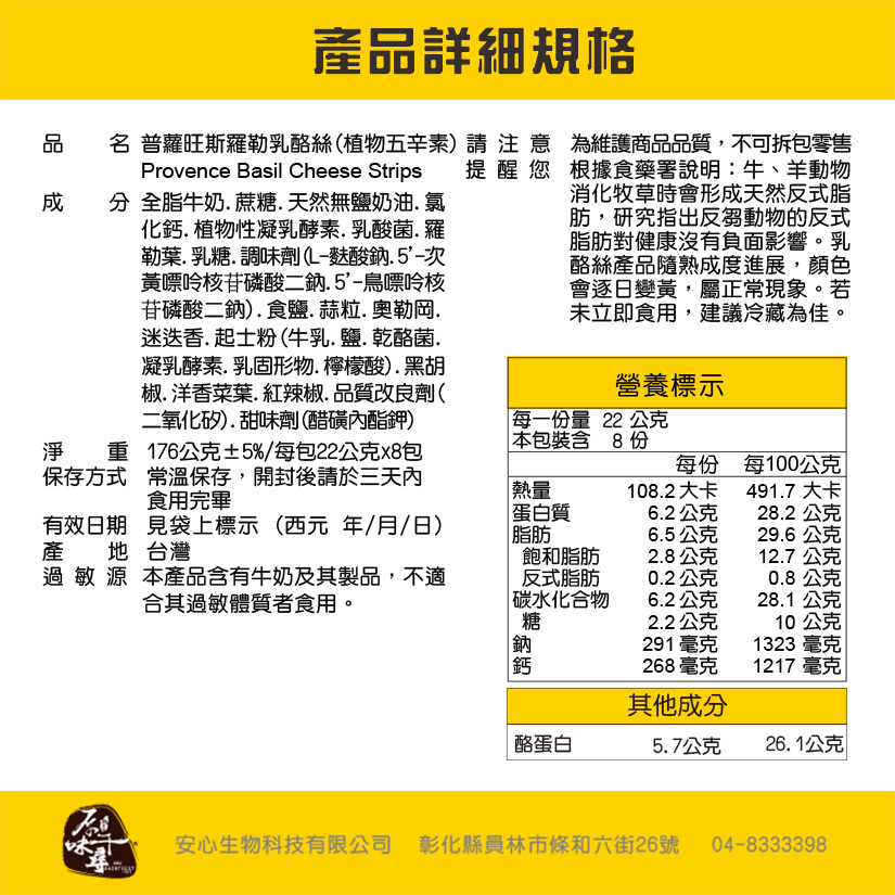 品  名|普蘿旺斯羅勒乳酪絲(植物五辛素)