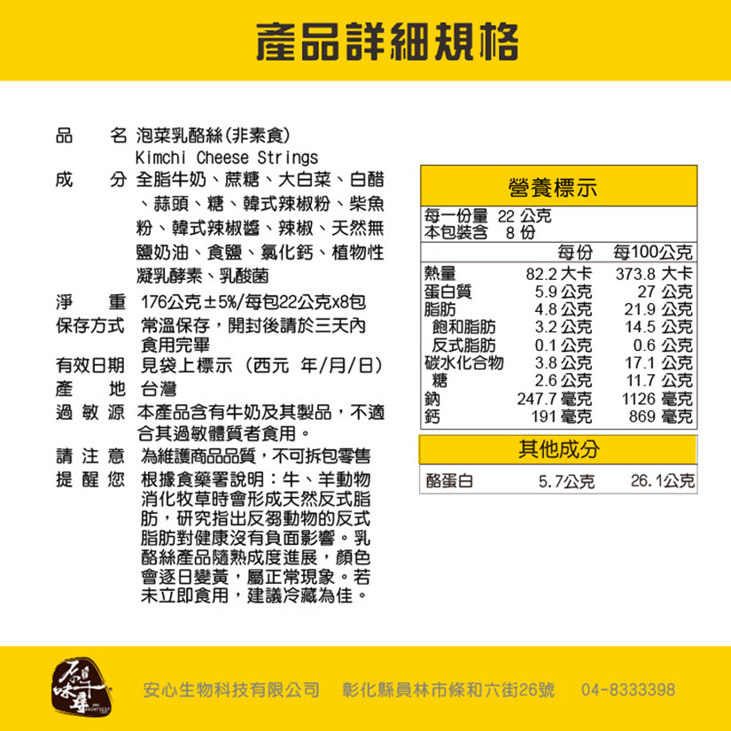 ★泡菜乳酪絲(8入/淘氣包/非素)