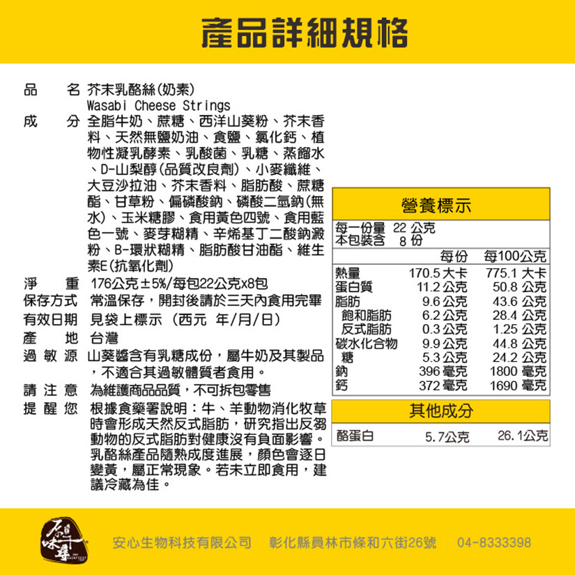 內容規格|176公克±5%/每包22公克x8包